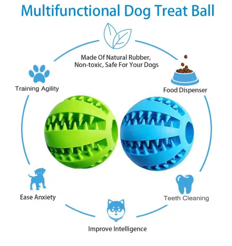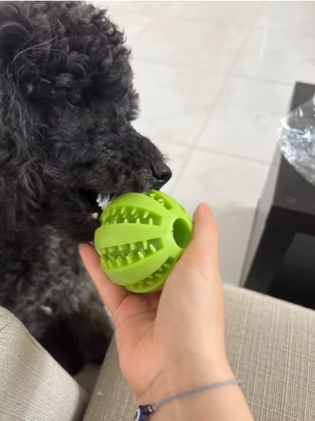Our rubber chew ball not only provides entertainment but also promotes dental hygiene. It helps clean your dog's teeth and massages their gums as they chew, reducing plaque and tartar buildup for a healthier mouth.